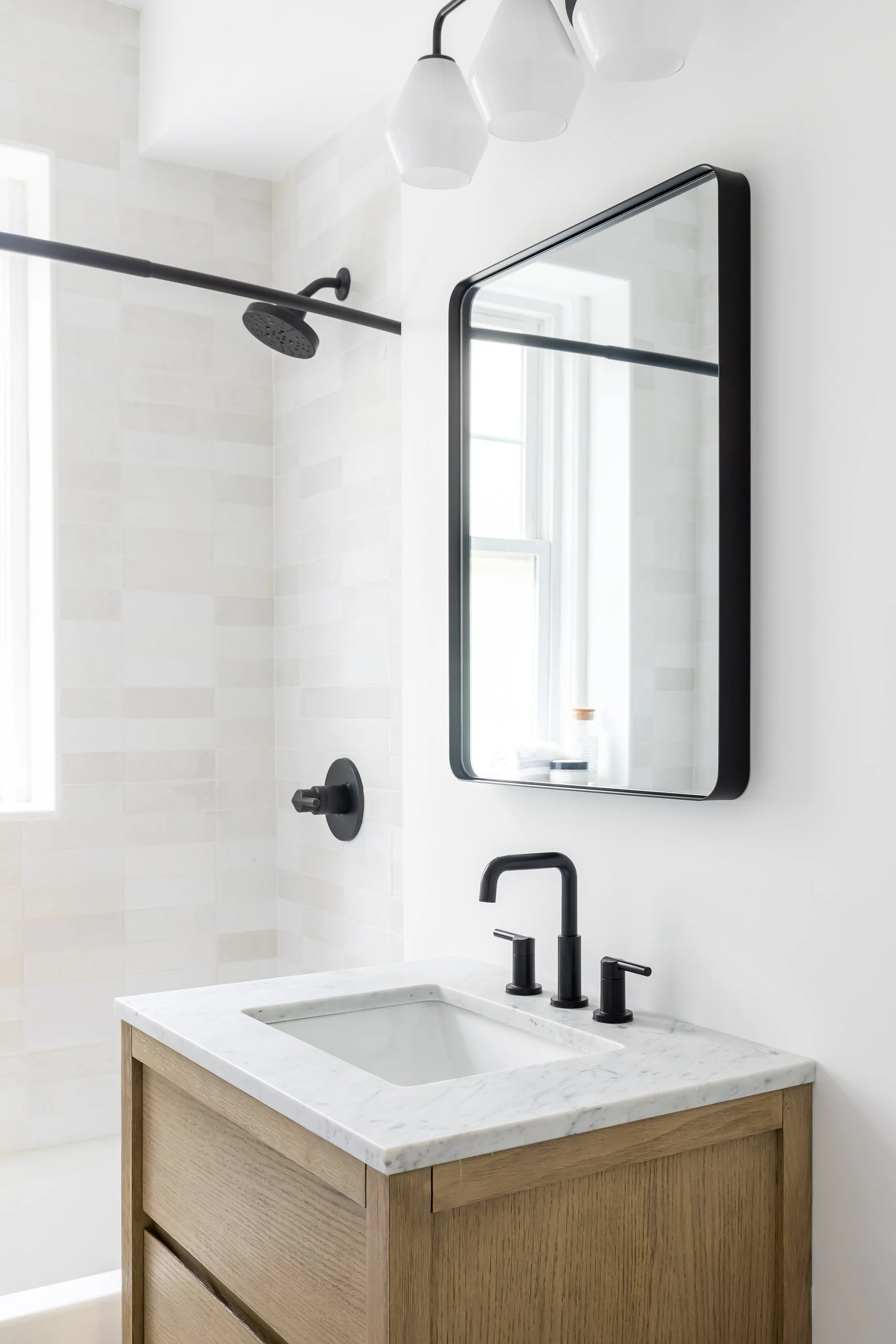 While we were doing pictures of that freshly remodeled bathroom, an electrician in the next room did something with outlets and we lost all the lights in the apartments. But this particular bathroom had a big window and very contrasty and minimalistic design, so we decided to go with a flow and took all the pictures with single exposure, no flash and lights off. It came out really nice, and definitely has that magazine style archetectural vibe comparing to traditional real estate photos.